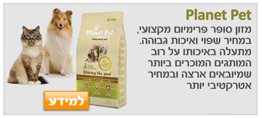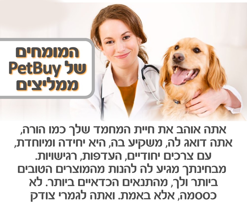 מוצרים לבעלי חיים וציוד לבעלי חיים באתר של PetBuy. מחירי הפרוטקציה המיוחדים שלנו יחשפו בפניך לאחר הרשמה בלבד! פטביי הנו אתר מזון ומוצרים לבעלי חיים. עבור בעלי חיים ואוהבי בעלי חיים ,PetBuy מפגיש בין חיות לבין אוהבי חיות וגם בין וטרינרים, דוג ווקרים, ספרי כלבים וכל בעל מקצוע שדרוש לבעל החיים שלך אצלנו תמצאו מזון לכלבים, מזון לחתולים ובעצם מזון לכל סוגי החיות. PetBuy הוא לא עוד אתר לחיות מחמד, אלא פורטל לבעלי חיים המכיל גם רשת חברתית לאוהבי בעלי חיים ובעצם רשת חברתית לחיות עצמן. ברשת החברתית לבעלי חיים של PetBuy (PetBuyBOOK) תוכלו למצוא לחיית המחמד שלכם שידוך וגם שידוך לעצמכם של אוהב/ת חיות. כמו כן תוכלו למצוא ב פט ביי וטרינר, מאלף, ספר כלבים, פנסיון וכל בעל מקצוע אחר שהצטרף ל PetBuyBOOK. הצטרפו ל PetBuyBOOK ההרשמה והשימוש ברשת החברתית של אוהבי החיות: חינם! בנוסף אנו גאים להציג את מרכז האימוצים הארצי, בו תוכלו לאמץ לעצמכם כלב או חתול מאחת מעמותות האימוץ בארץ. מרכז האימוצים הוא אתר למי שמחפש לאמץ לעצמו חיית מחמד בצורה נוחה ומהירה. פט ביי היא רשת חיות חכמה בהתאמה אישית לחיות מחמד. המוטו שלנו: לכל חיית מחמד מגיע יחס מיוחד.יחס מיוחד זה למשל לפתח רשת חברתית בשביל החיה שלך, להכיר אותה בשם ובצרכים המיוחדים שלה ולהסב לה ולך אושר.