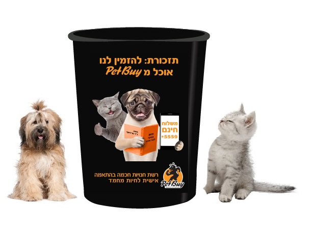 דלי אחסון + מכסה 40 ליטר עם גרפיקת: אל תשכחו לקנות לנו אוכל מ PetBuy