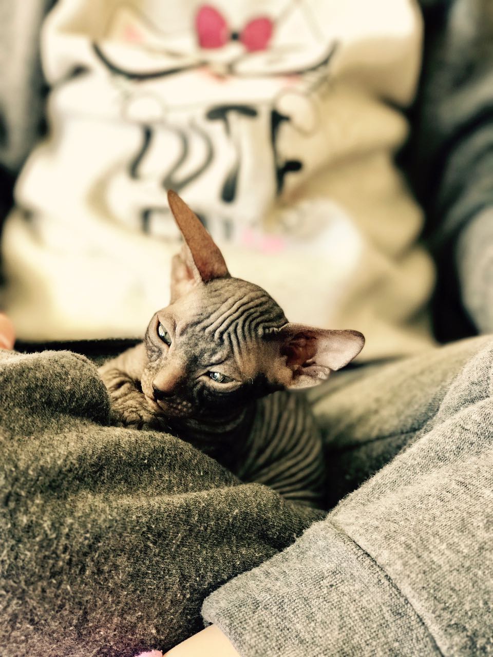 חתולה שלנו הלכה לאיבוד , צבע אפור עם אוזניים קטנות