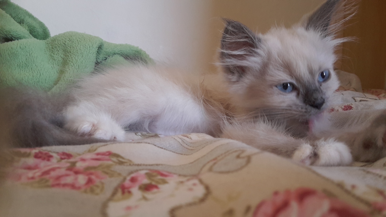 חתולה שלנו הלכה לאיבוד , צבע אפור עם אוזניים קטנות