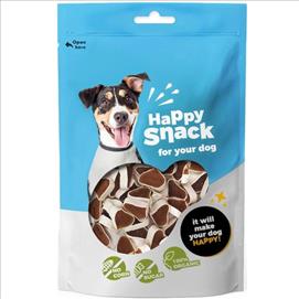 חטיף לכלבים על בסיס בשר מתאים לכל שלבי החיים. מומלץ לתת כצ’ופר או כחטיף אילוף. כל מוצרי הפי סנאקס: – על בסיס רכיבים 100% אורגניים. – ללא תוספת סוכר. – בעלי טעימות גבוהה במיוחד. רכיבים: בשר עוף, דג קוד, חלבון צמחי, גליצרין, שמן זית. ערכים תזונתיים: חלבון: 35%, שומן:1.5%, אפר גולמי: 0.5%, סיבים תזונתיים: 1.8%, לחות: 20%