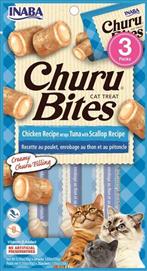 מעדן חטיף אינבה צ'ורו בייטס לחתול בטעם עוף טונה וצדפות
