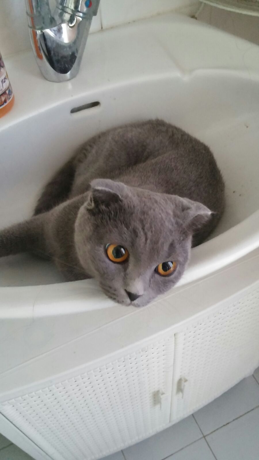 חתולה שלנו הלכה לאיבוד , צבע אפור עם אוזניים קטנות