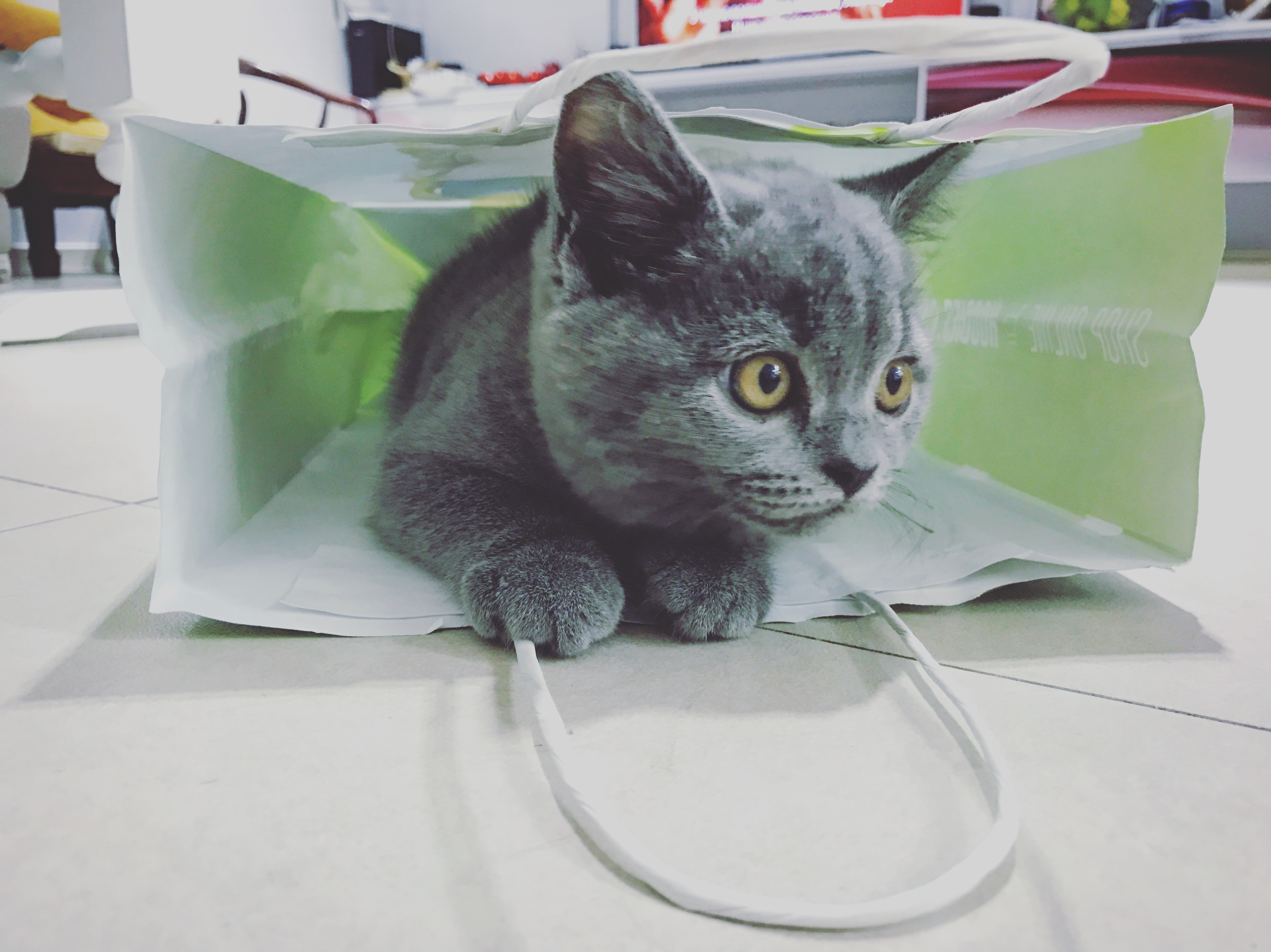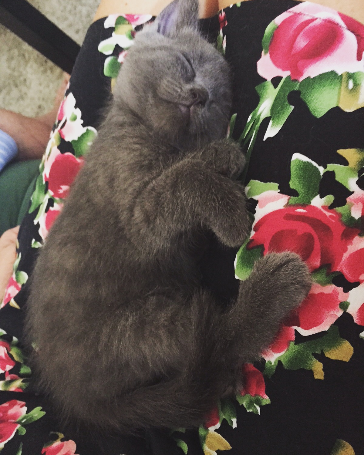 חתולה שלנו הלכה לאיבוד , צבע אפור עם אוזניים קטנות