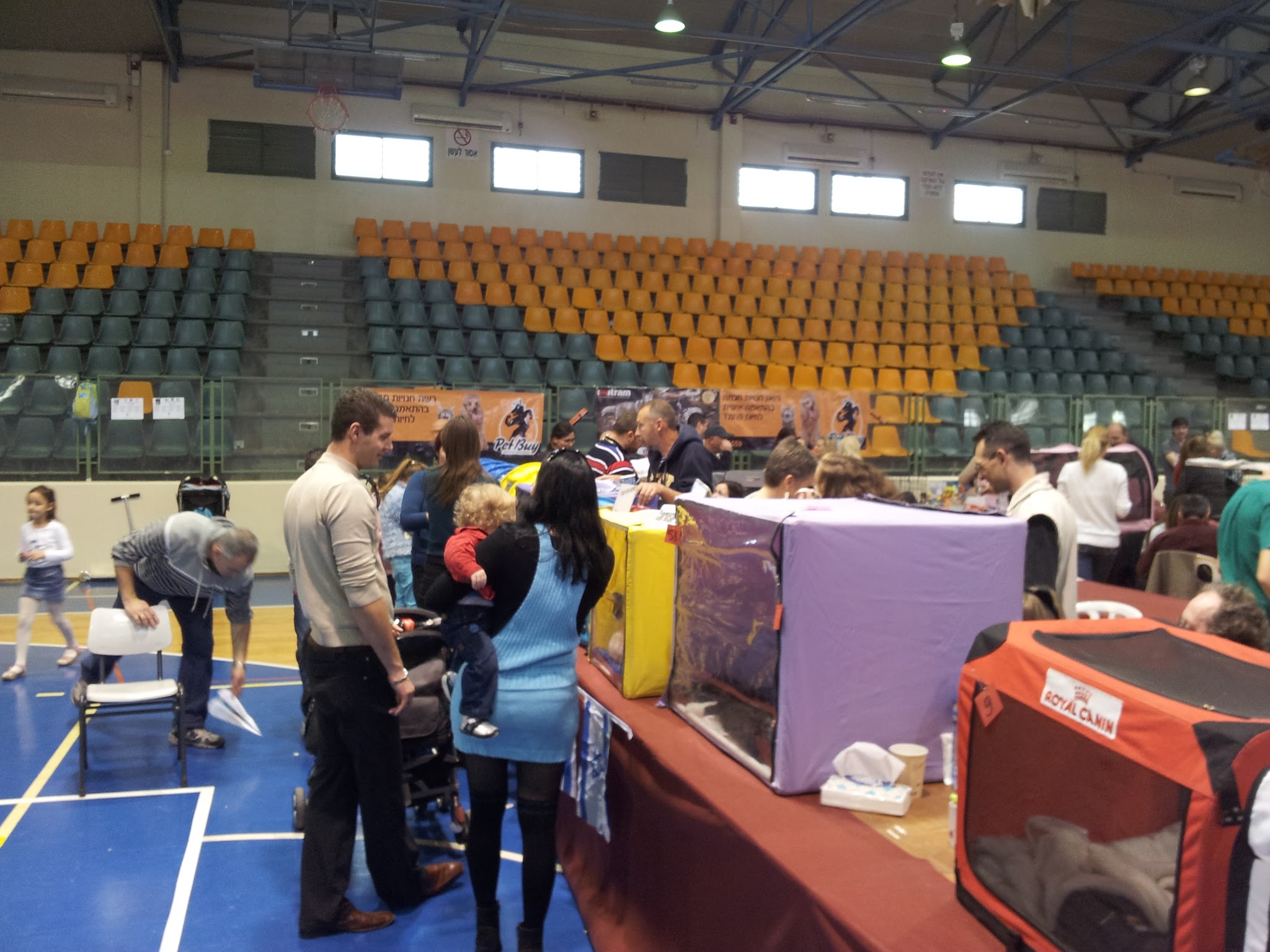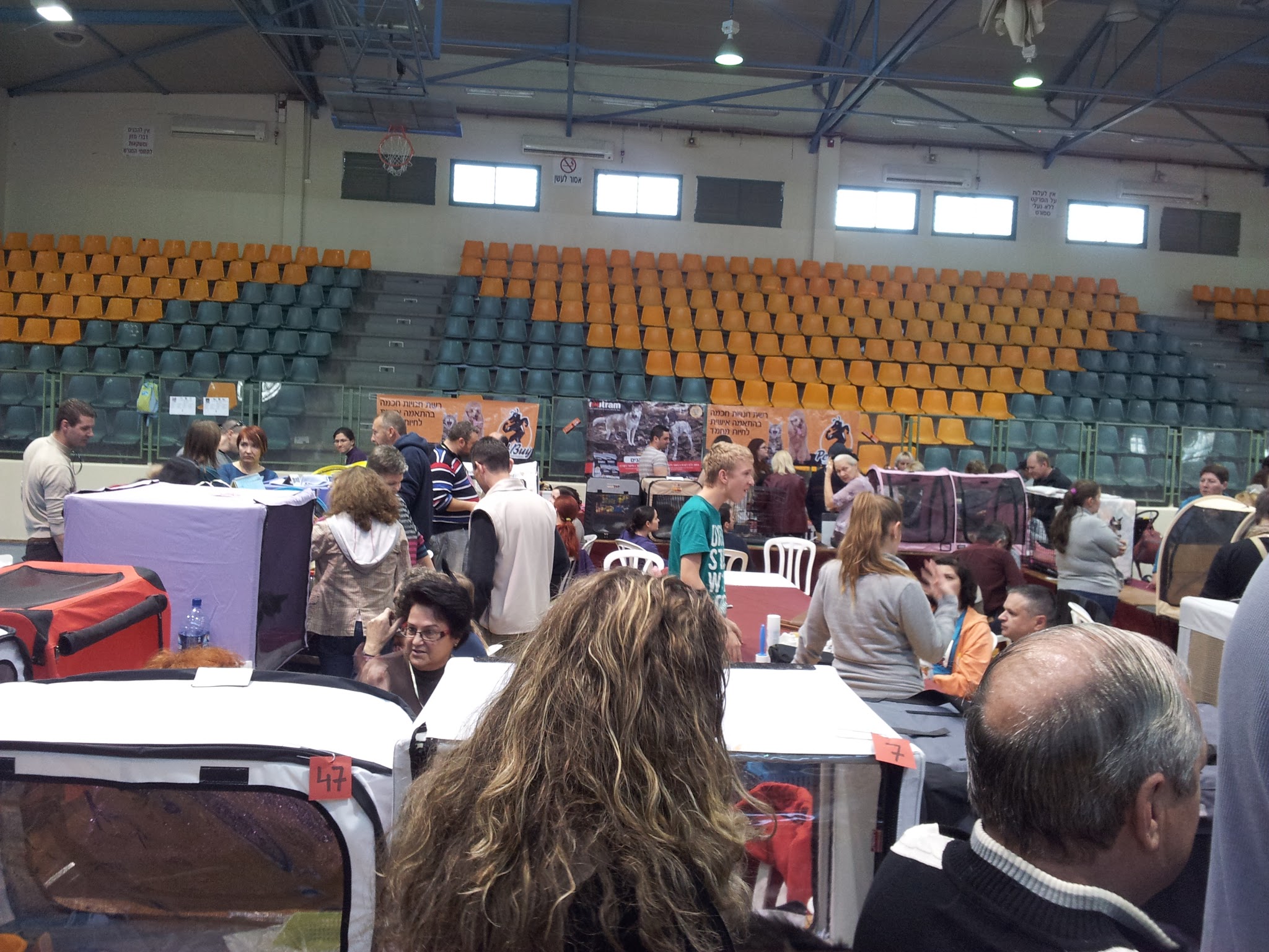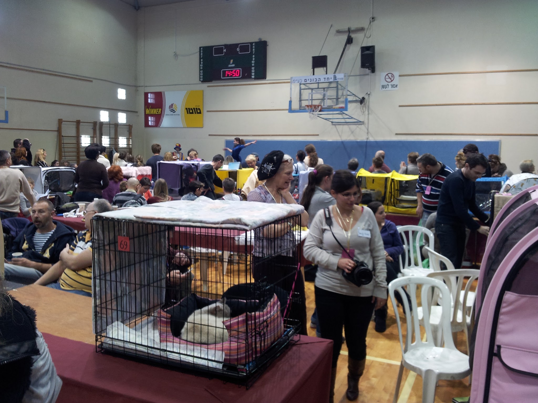 מגרש הכדורסל של אולם הספורט היה מלא בשולחנות שעליהם הוצבו הכלובים של החתולים. המבקרים הסתובבו בין השולחנות להתרשם מכל החתולים היפים.
